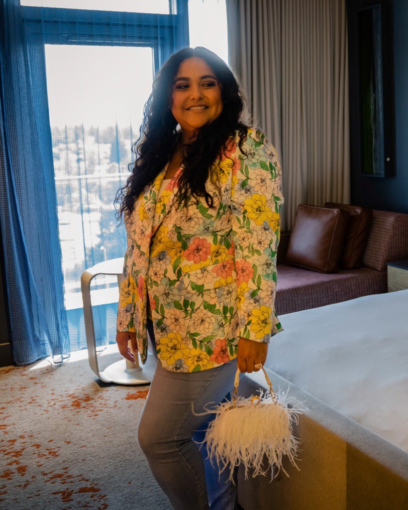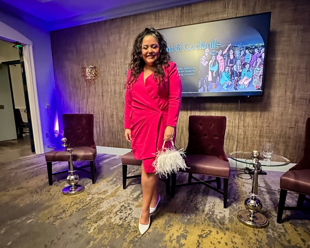 Styled here with a blazer-dress and heels worn for a Cocktails & Content Event in Silicon Valley.